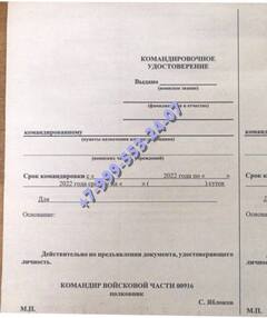 Заказать командировочное удостоверение военнослужащего в Судаке можно и по иным причинам, например, необходимо срочно ехать на учения или в зону боевых действий. В таком случае следует обращаться к руководству с заявлением. Если человек потерял, или испортил документы, он может обратиться в нашу компанию. Купить командировочное удостоверение военнослужащего с доставкой мы предлагаем недорого.